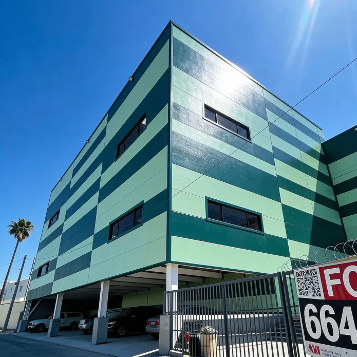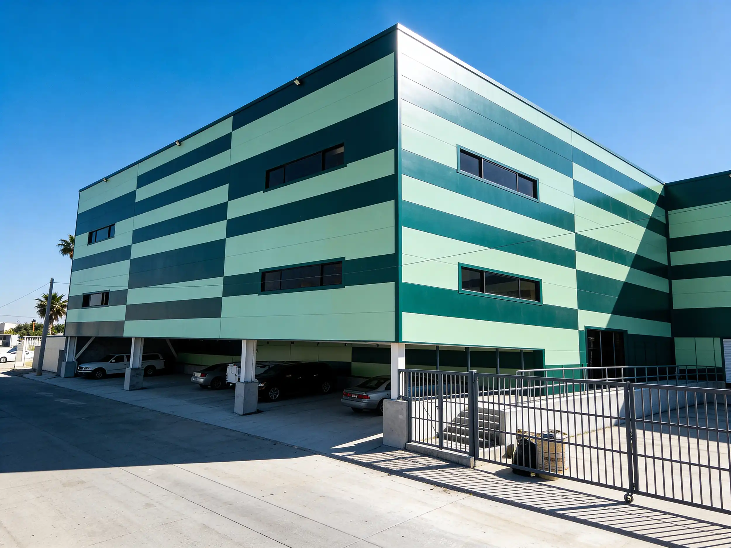 Desarrollo de una nave industrial de 4,946 m² concebida para maximizar la eficiencia del espacio y la adaptabilidad operativa. El edificio cuenta con fachadas revestidas con panel Kingspan y un mezzanine de dos niveles que incrementa la superficie funcional del proyecto.